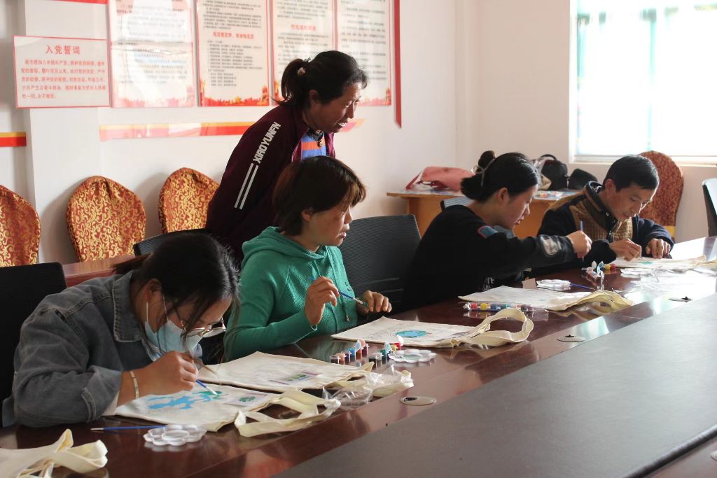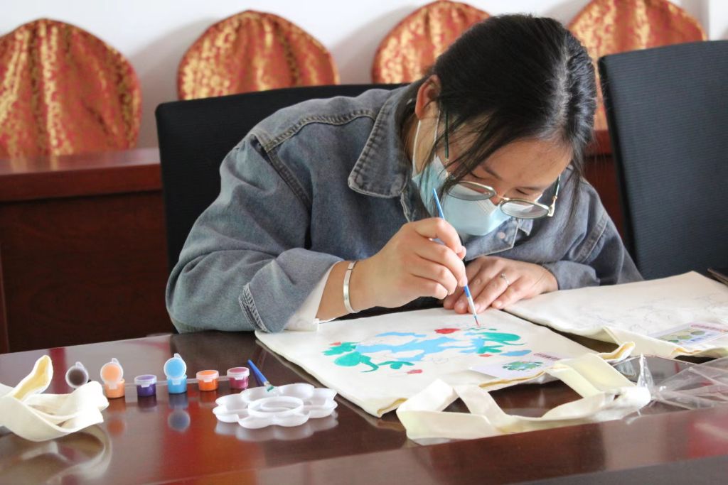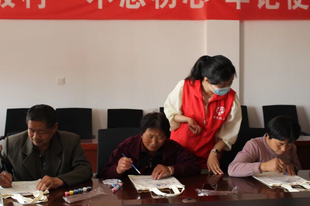 在手绘环保袋DIY环节,社工详细地向大家介绍了手绘的方法后,逐一向大家分发了环保袋、手绘颜料、画笔、调色盘等工具,让辖区村民自由选择喜爱的环保袋款式进行手绘创作,一笔一划,细致勾画,用画笔将保护地球、绿色地球等画面描绘在了环保袋上,充分发挥村民们的想象力和创造力,绘制出了属于自己的环保袋。
