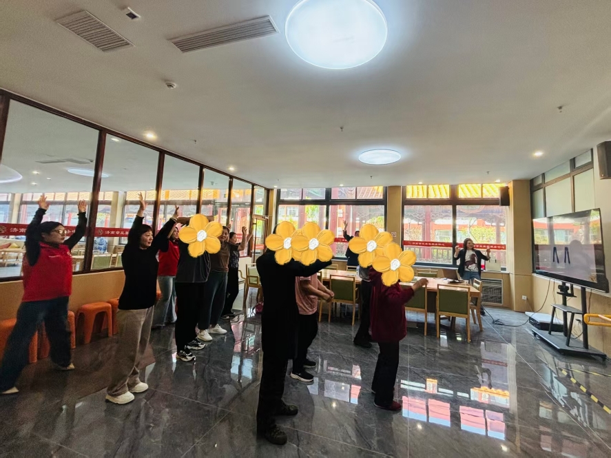 “开业开呀开火车,北京的火车就要开了”,“往哪开”,“上海”,“开呀开呀开火车,上海的火车就要开了”...在"开火车"团体心理游戏环节,张护士长创设情境化训练模块,将传统游戏升级为"注意力-反应力-协作力"三重赋能载体,亲历者需精准复述前序人员指定的"站点名称"并叠加新站点。在社工的鼓励和带动下,大家积极接力,引发欢笑声与掌声交织攀升。社工团队同步观察记录患者的表情管理、边界意识等社交指标,数据显示本轮游戏集体响应正确率达87%,人际互动频次较日常活动提升两倍。