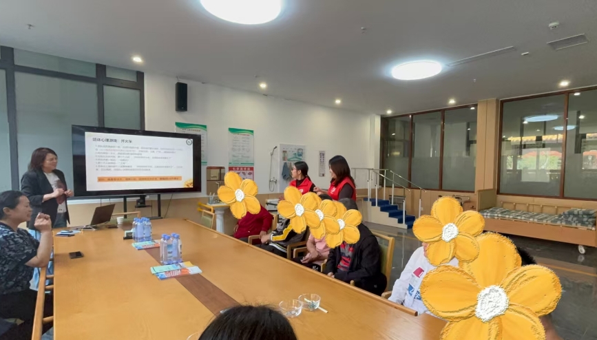 在"慢病躯体管理与健康促进"专题环节,张护士长依托多媒体教学系统,投影演示《康复健身操标准化教程》,亲历者都非常配合跟着张护士长进行躯体功能训练。随着健身操视频中韵律节奏,亲历者沉浸式锻炼自己的关节灵活性与心肺耐力。活动现场,二十余名患者在社工的同步伴练下舒展肢体,跟练率达100%,"原来抬手臂这么简单动作也有呼吸节奏讲究!"亲历者蔡女士在间歇期感慨道。