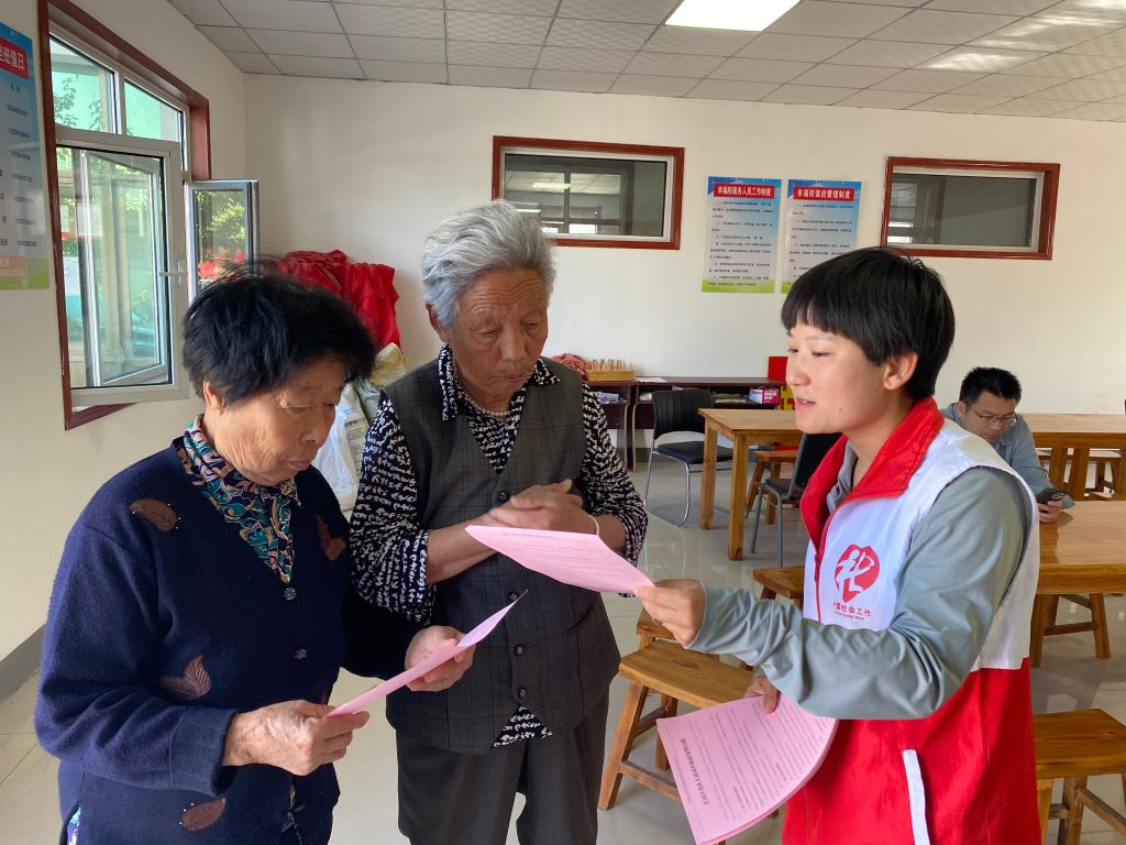 在活动的另一边,社工还向村民们发放了长清区残疾人两项补贴政策的明白纸。通过简明扼要的文字和图表,社工详细解读了政策的内容、申请条件以及申请流程。同时,社工也积极与村民们互动,耐心解答他们的疑惑,确保每一位村民都能充分了解政策内容。