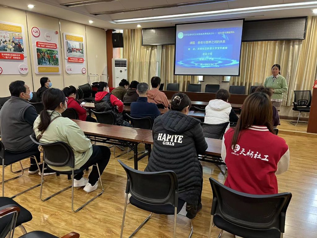 一年之计在于春,春季是阳气生发的季节,做好春季养生尤为重要。为帮助老年人正确看待衰老,增强辖区老年人的健康观念和预防意识,倡导科学健康的生活方式。4月21日,宝华街街道社工站链接健康养生专家严明老师前来授课,为辖区居民开展“与健康有约”老年人健康知识讲座,吸引众多老年朋友热情参与。