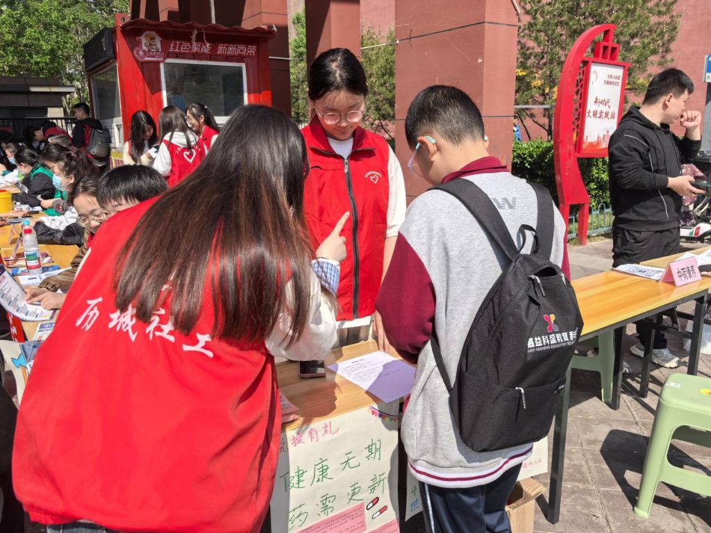 儿童友好主题世界地球日宣传活动摊位前,主题鲜明、色彩明亮的手绘海报吸引了很多小朋友前来驻足参与,志愿者耐心地向儿童讲解地球日地球资源、生物多样性、环保行动等各类保护地球主题知识。“以书换绿”“知识问答”互动体验环节,儿童通过书籍、地球日知识问答换取一盆生机勃勃的迷你绿植或一份承载希望的种子纸,感受通过养护、播种绿植共同为地球添一抹绿,激发儿童对大自然的热爱和保护地球的责任感。“过期药品兑换”环节,社工和志愿者根据海报向居民讲解过期药品的危害及建议大家定期整理家庭药箱、合理储存药品、遵循医嘱用药,并将居民拿来的过期药品进行登记,并兑换成生活用品。