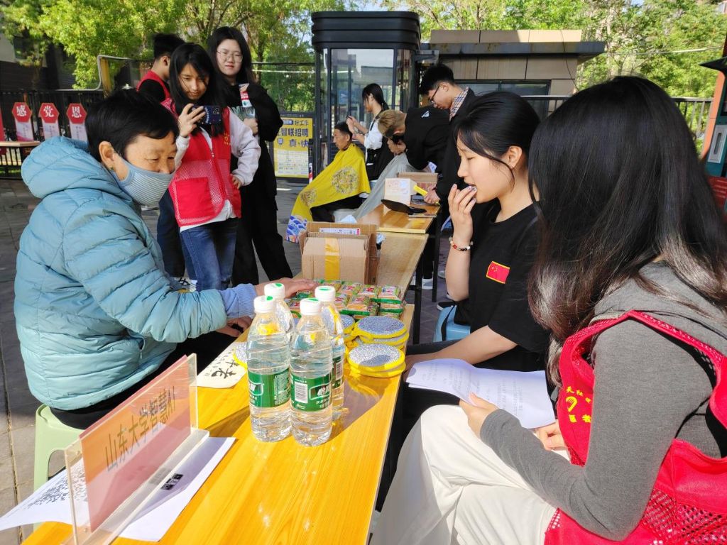 4月19日,王舍人街道社工站联合历城区社工总站、万象新天社区,动员大学生志愿者力量,启动“有点儿意思”公益市集融合宣传项目首次主题宣传活动,活动以儿童友好世界地球日、老年人防诈、AI伴老为主题,聚焦“一老一小”开展特色宣传。