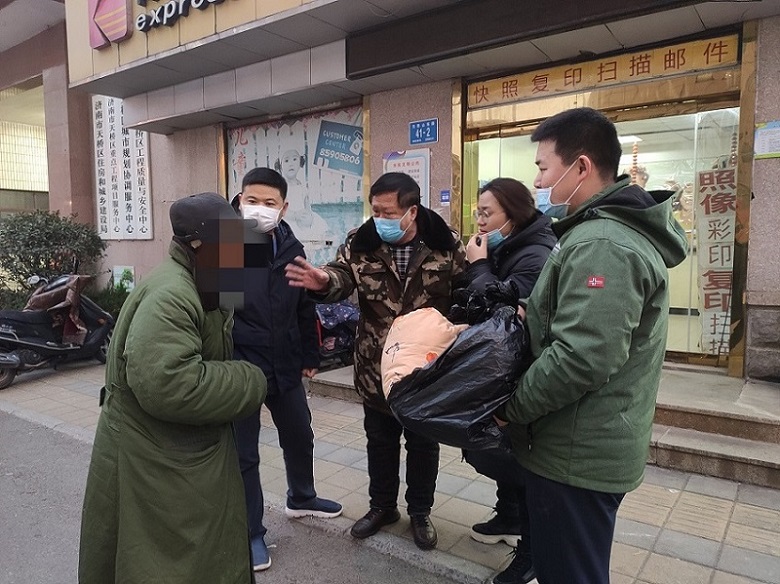 社工站自12月23日起,在辖区主要干道、广场、银行、写字楼等流浪乞讨人员重点活动区域开展巡查救助行动并备足棉衣、棉被等御寒物资,确保巡查到位,保证随时为流浪乞讨人员提供临时救助。在巡查到无影山东路与无影山中路交叉口名人时代大厦附近时,发现一名在此长期驻扎的流浪乞讨人员,社工积极劝导其入救助站接受救助,在劝导无效后,本着“自愿救助”的原则,社工为其留下棉被等御寒物资以及社工站的联系方式,确保该流浪乞讨人员可以温暖过冬。