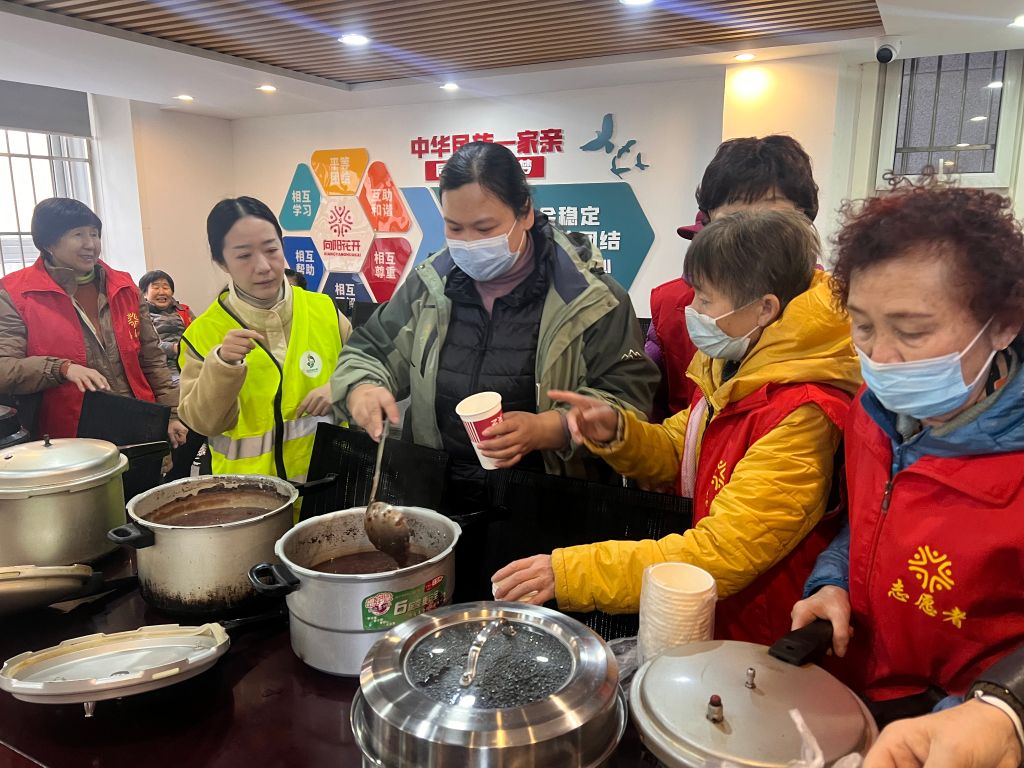 杆石桥街道社工站开展“粥到暖人心” 腊八节主题社区志愿服务活动