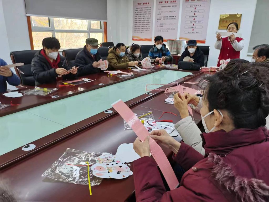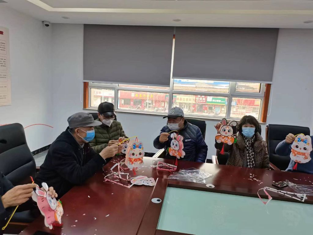 活动现场,社工为大家详细介绍元宵节的由来及习俗,还准备了猜灯谜等互动游戏,让老人在享受游戏快乐的同时感受节日的气氛,为了让老人们体验亲手制作花灯的乐趣,也为传统的中秋佳节增添喜悦,社工拿出提前为老人们准备好的材料包进行分发,让大家一起动手来制作精美的花灯。社工耐心细致的为老人们讲解灯笼的部件以及组装过程,手把手教老人制作,经过大家的共同努力一盏盏漂亮的兔子花灯制作出来。社工和老人一边做一边聊家常,说说过年期间发生的趣事,活动现场氛围轻松愉快,洋溢着节日喜庆的气氛。