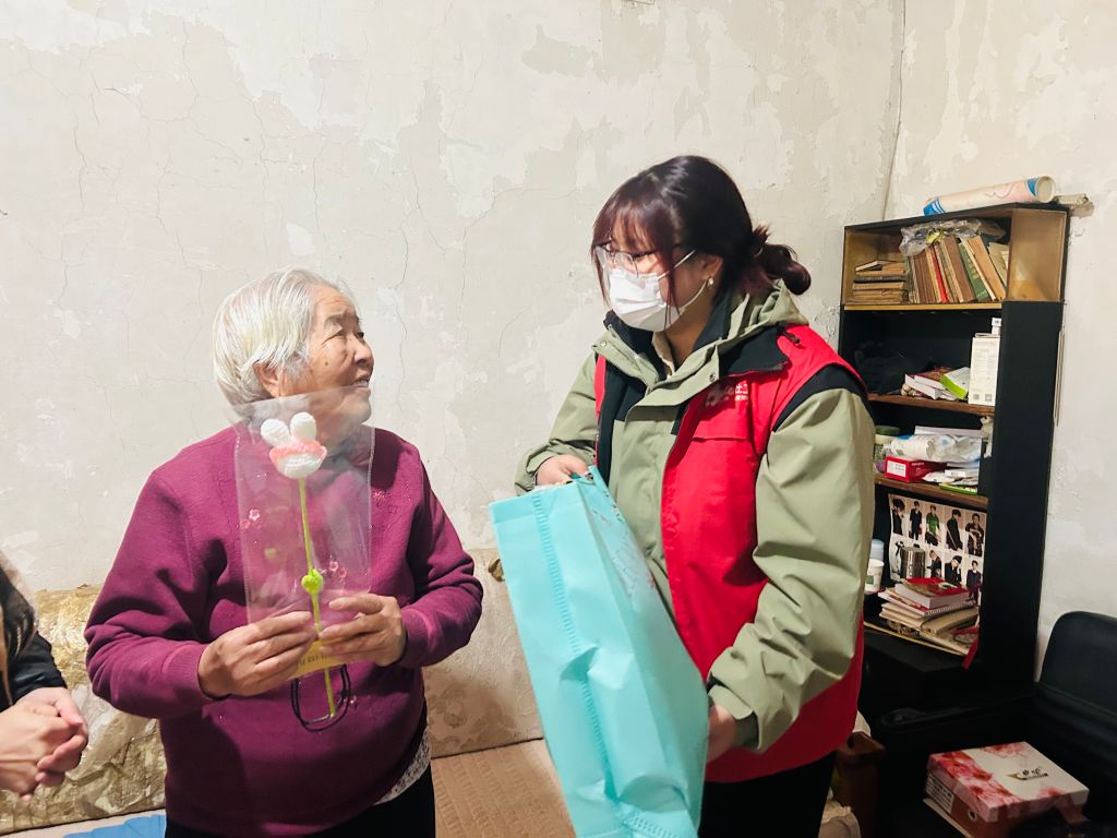 社工为服务对象送上妇女节礼物和关怀