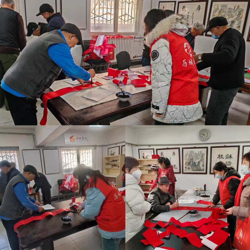 岁末年初,春节将至。为弘扬中华优秀传统文化,丰富社区居民的精神文化生活,营造吉祥如意的春节氛围,1月26日—1月29日,山大路街道社工站联合山大路街道社会事务科在甸柳社区与柳子剧院开展“迎新春,送春联”幸福生活节义写春联活动。