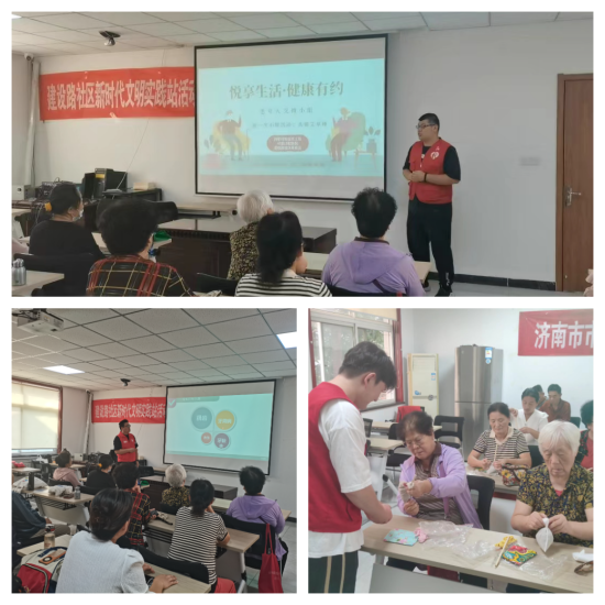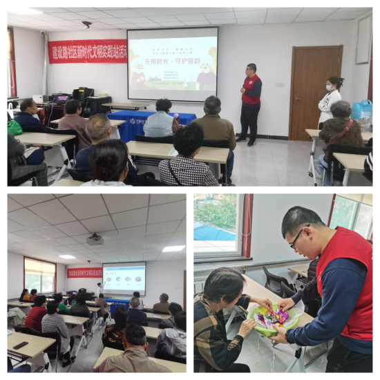 为切实提升老年群体的健康知识水平和自我保健能力,社工站根据组员的需求,链接可恩口腔、济南普瑞眼科医院、北京同仁堂、平安银行、济南泉泰公益服务中心以及济南市按摩医院等多家专业团队在每期开展不同主题的健康知识讲座,内容涵盖口腔健康、秋季养生、眼部保健、居家安全等多个方面。讲座中,社工和志愿团队以通俗易懂的方式为老年人讲解科学的健康知识,并传授日常保健技巧。例如,在口腔健康讲座中,社工详细讲解了常见口腔疾病的症状及预防方法,帮助老年人深入理解口腔保健的重要性;在秋季养生讲座中,社工结合季节变化,针对常见疾病的预防和饮食调整提出了实用建议。通过这些讲座,老年人不仅掌握了实用的健康知识,还纠正了常见的养生误区,显著增强了他们的自我保健意识和自主管理健康的能力。