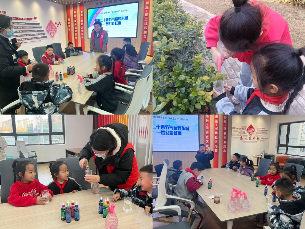 雨水,二十四节气中的第二个节气,也是中国民间重要的传统节气之一。为引导辖区儿童深入了解雨水节气的文化内涵,感受春天的气息,2月15日,在雨水节气来临之际,郭店街道社工站联合东城名郡社区开展了一场“油水魔法:彩虹雨的奇幻诞生”雨水节气主题活动。