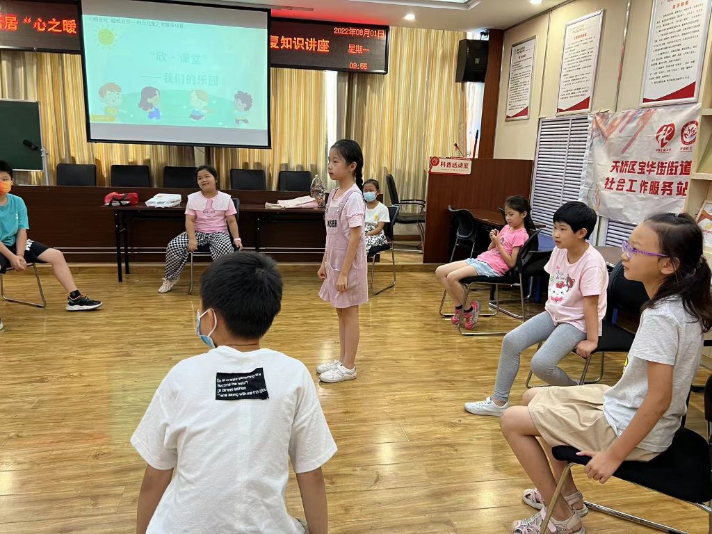 为丰富辖区内儿童的暑期生活,提高辖区儿童的课外知识,促进儿童之间沟通交流。宝华街街道社工站于8月2日开展“童心相约,结伴成长”儿童成长小组活动第一节。本次活动旨在帮助组员互相认识,互相了解增进组员情感链接。