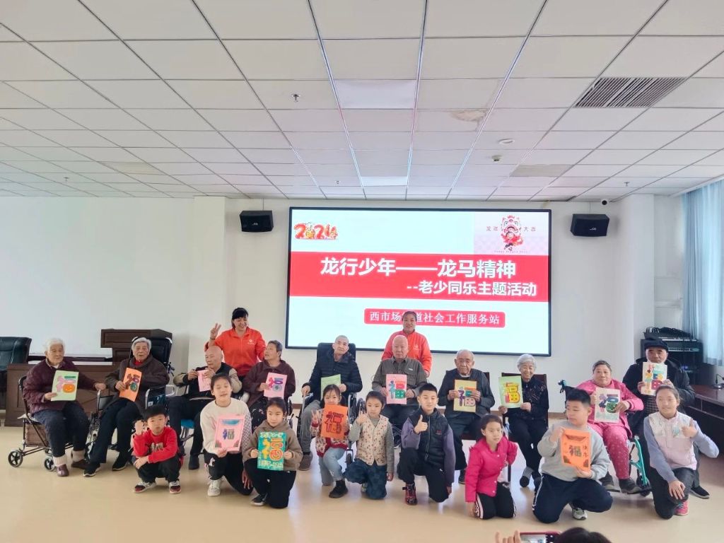 尊老爱幼一直都是中华民族的传统美德,为引导青少年孝敬父母,孝敬长辈,学会感恩,树立良好的家庭美德观念,增强青少年的社会责任感,争做尊老、敬老的新时代好少年,冬令营设计了尊老爱老为主题的内容。这一期社工带领孩子们走进了西市场街道综合养老服务中心,为那里的爷爷奶奶送去了他们精心准备的节目和祝福。活动在老幼共绘新年美好祝福中开始了,一老一小结对子齐心协力完成一幅美术作品。老人执笔孩子协助亦或孩子拿笔老人帮忙,你画一笔我涂两下,老人欢心、孩子开心。紧接着就是孩子们为老人精心准备的特色节目:二胡演奏、长笛演奏、诗歌朗诵、舞蹈、演唱等。精彩纷呈的表演,让养老院里充满了欢笑与掌声。老人们的开心和喜悦溢于言表。养老中心的工作人员感慨的说:“老人们好久都没这么开心和激动过了,孩子们的到来对他们来说太难得了,还有这么好的节目,你看他们多愿意和孩子们玩儿。李大爷平时都不说话也不笑,你看今天笑的多开心,还不停地鼓掌……”。本节活动营造了尊老、敬老、爱老、助老的良好风尚,培养了孩子们敬老爱老和奉献的意识,让传统美德深入孩子们的心灵。