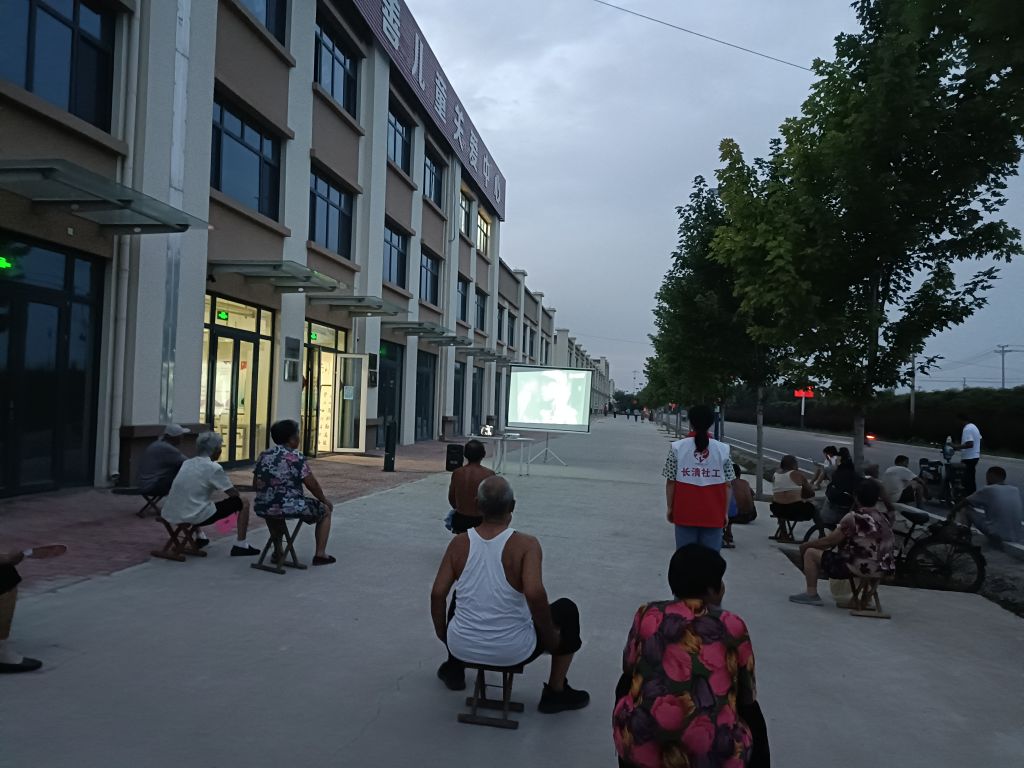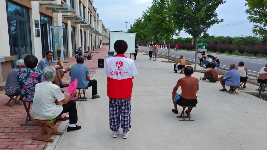 活动之前,志愿者在社工站门口拉起银幕,架上放映机。老人们早早的到达了放映地点,兴致勃勃坐在幕布前,等待电影开始。影片《英雄儿女》勾起了老人们对抗美援朝那场战争的记忆,一个个波澜壮阔的画面震撼人心,一句句掷地有声的话语扣人心心弦,中国人民志愿军的爱国情怀和斗争精神令人动容。