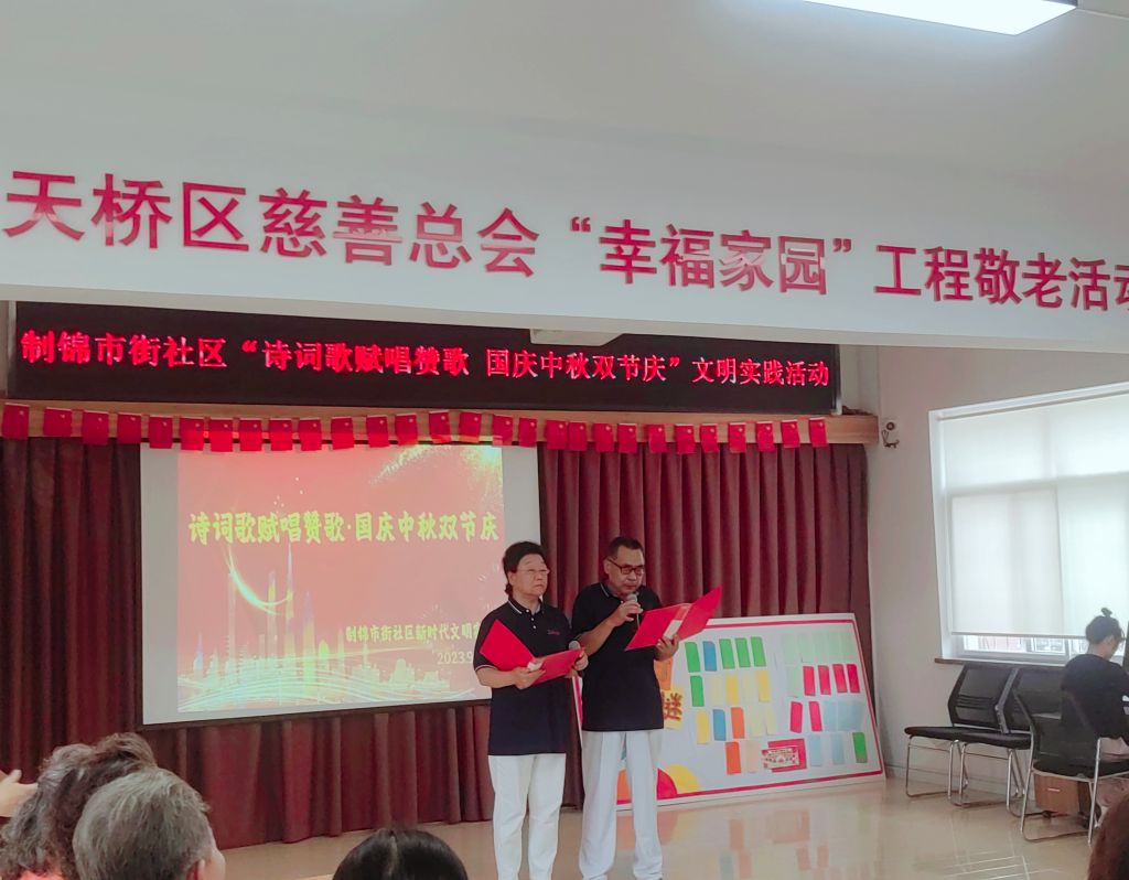为丰富社区居民的文化生活,增强居民之间的联系与沟通。9月26日上午,制锦市社工站协助制锦市街社区举办“诗词歌赋唱赞歌 国庆中秋双节庆”文艺演出活动。