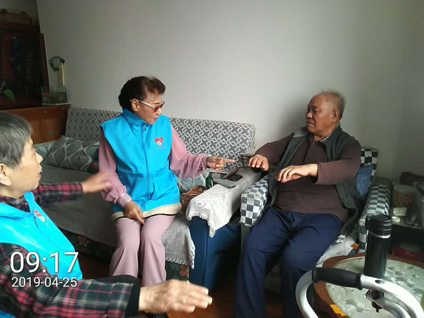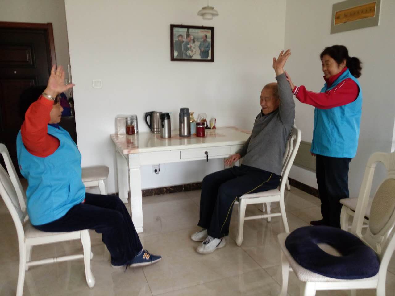 由李维玲老师带队的志愿小分队如期的来到董立彬老人家,向董立彬老人教授手指操,同时还聊天解闷,了解老人近期的身体状况,董老师对这种志愿服务非常欢迎和喜欢,一时来了兴致还为志愿者唱了首红歌。这是山泉驻甸柳第一社区项目组培育的助残爱老志愿服务队为辖区80岁以上行动不便的老人开展的第三次助残爱老服务的一个场景。