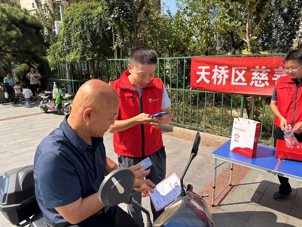 活动现场,社工们向社区居民宣传“快乐一元捐”活动的目的和意义,同时,他们还发放了由天桥区慈善总会特别印制的《关于开展“快乐一元捐”活动的倡议》宣传单页,并呼吁大家伸出援手,共同为需要帮助的人送去温暖和希望 。