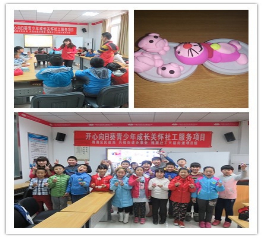 2016年1月29日下午,槐荫社工兴福街道项目组“童心‘绘’聚·‘艺’想天开”第二次小组活动在街道文化站二楼活动室顺利举行,本次活动的主题是“创意泥工·捏出心中七彩梦”。
