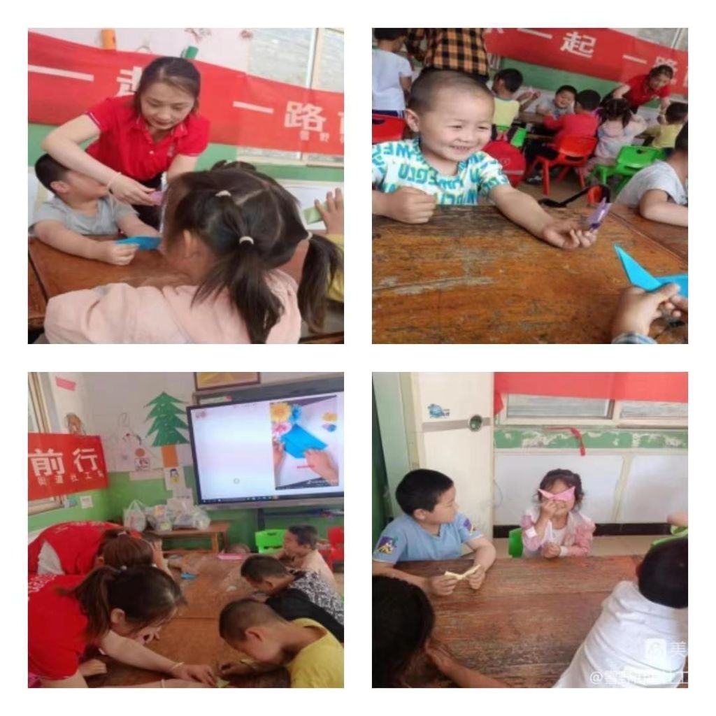 在活动筹备阶段,社工站与北栾宫村儿童主任、村内的幼儿园老师们取得联系,将活动方案与活动计划进行了基础讲解,得到了儿童主任、幼儿园老师们的支持,经过沟通后,确定好了参与小组活动的小组员。活动当天,社工们来到幼儿园,与小组员们相互进行了简单的自我介绍,被小组员们亲切的称呼为“社工姐姐”,随后,折纸活动正式拉开帷幕。