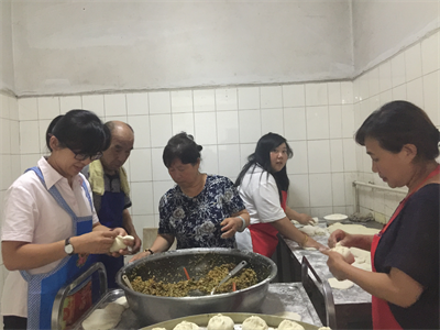 虽然由于方言不同,沟通上稍有障碍,但是我们双方都以善意的关心与微笑,突破了这一障碍,本着尊重、接纳、同理的社会工作价值观,与工作人员沟通工作上的困难与应对经验,与院内老人沟通敬老院生活的状况与建议。我们一起包包子、一起吃饭、一起聊天,迅速融入了这个民风淳朴的大家庭。