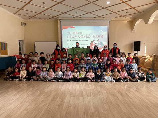 活动开始前,汪律师首先向大家进行自我介绍,经过短暂的认识之后便开始讲授法律知识。汪律师通过网络诈骗、拐卖儿童等方面分别做出讲述,并通过与小朋友互动的方式让孩子们积极发表自己的看法,还列举了生活中一些真实的例子为孩子们进行讲述。交流结束后,社工组织大家进行合影留念。