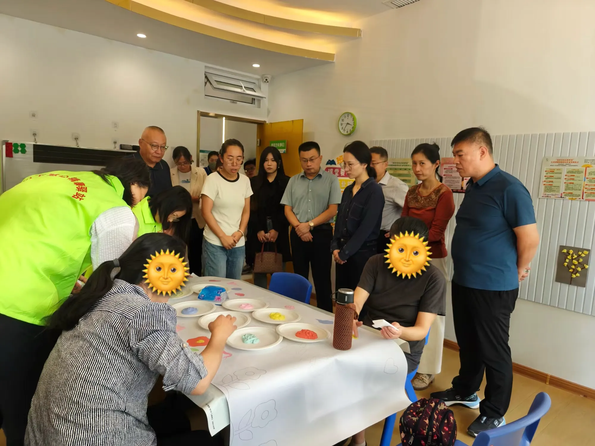 在康复空间(静区)布置了沙盘区、手工区、读书区等,便于精障人士学习、交流、发展兴趣爱好。现场正在开展精障人士及家属的“情绪巨幅画”活动,大家在济南市心理咨询师协会老师的带领下,用舒缓身心的色彩手绘了一幅精美的画卷。此活动的开展大大丰富辖区康复对象及家属业余生活,激发了创造力,促进彼此的心灵成长与交流。