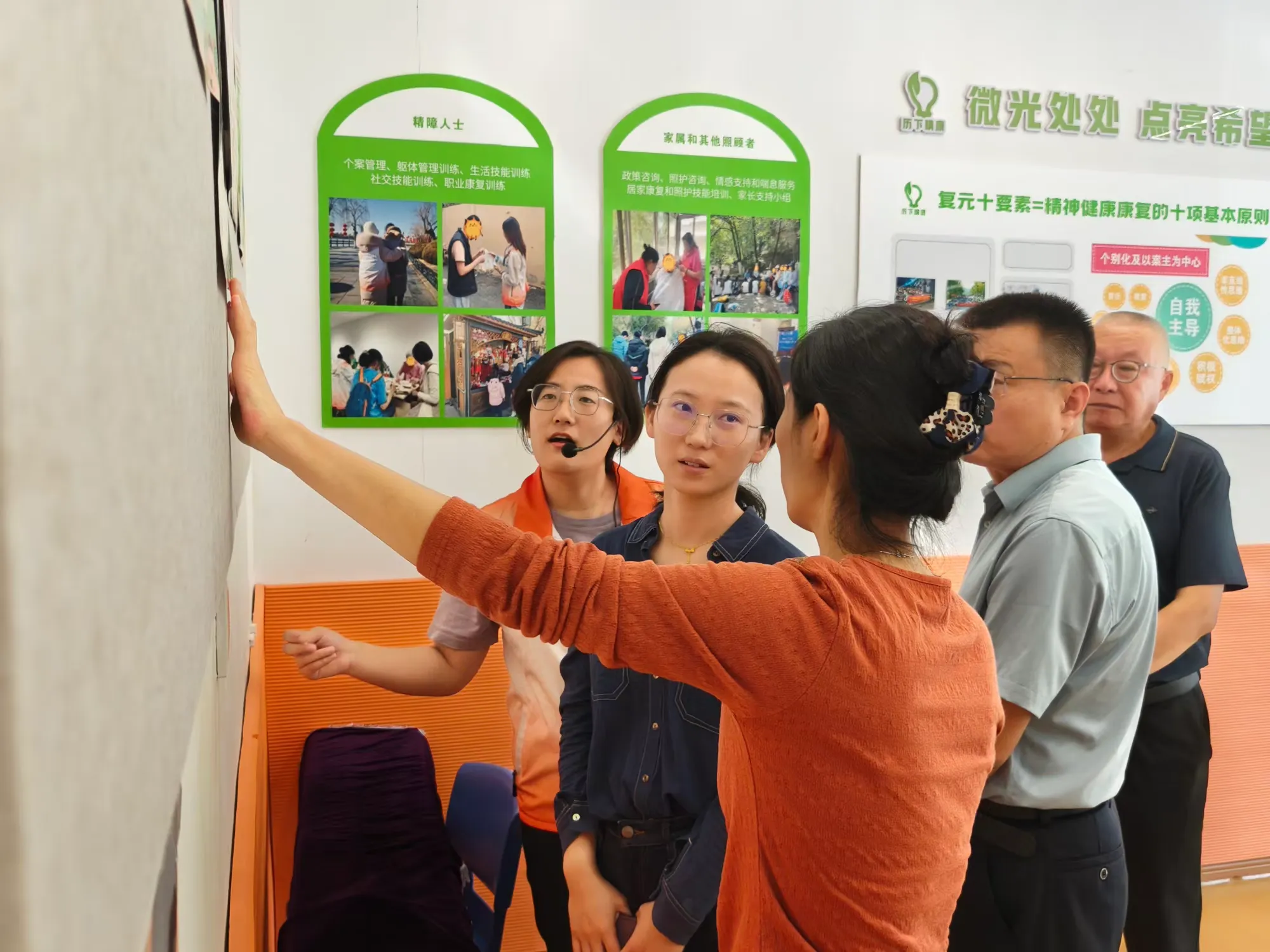 在康复空间(动区)的设置了身体康复区、音乐治疗区、分级分类特色精康服务展示区、心声墙、知识科普区等,便于精障人士及家属进行身体康复训练、预防复发知识学习、压力释放及表达需求等。与会领导在观摩后表示高度的赞扬,对服务点开展的服务内容表示高度的认可。