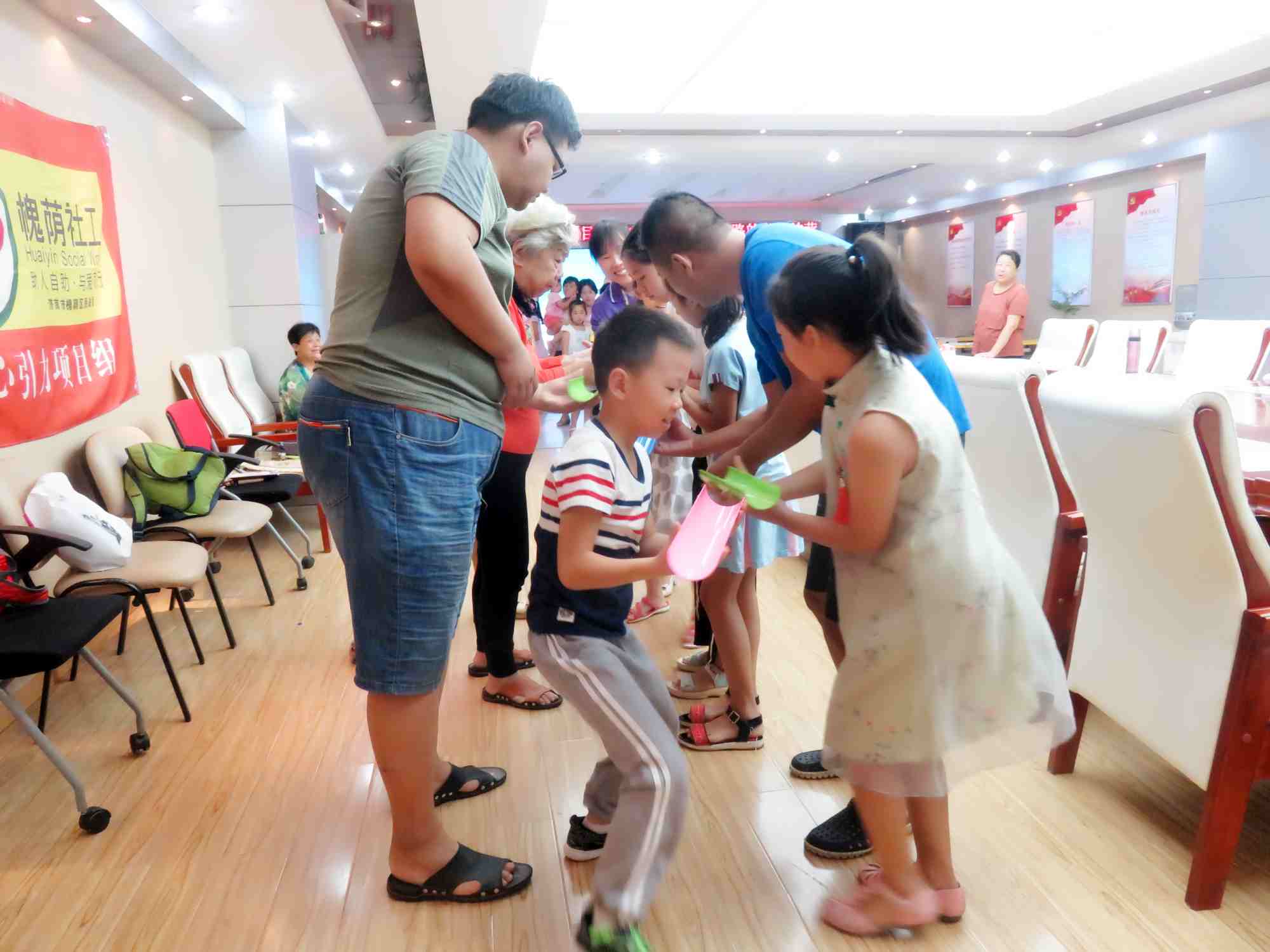 活动开始后,社工对夏令营进行了简要总结,并由负责社工根据视频针对每个小组进行讲解,帮助小组成员更好的回顾整期夏令营的收获与成长。随后,为加强团队协作力与亲子互动能力,社工带领大家进行了“水到渠成”特别活动,孩子们与家长通力合作,共同完成,过程中家长纷纷献计献策,孩子们也对自己在其中体会到的道理进行了分享。最后,为激励青少年更加积极主动地参加社区活动,勇于表达自己,社工为夏令营中表现优异的小朋友颁发了奖状,进行了特别嘉奖。