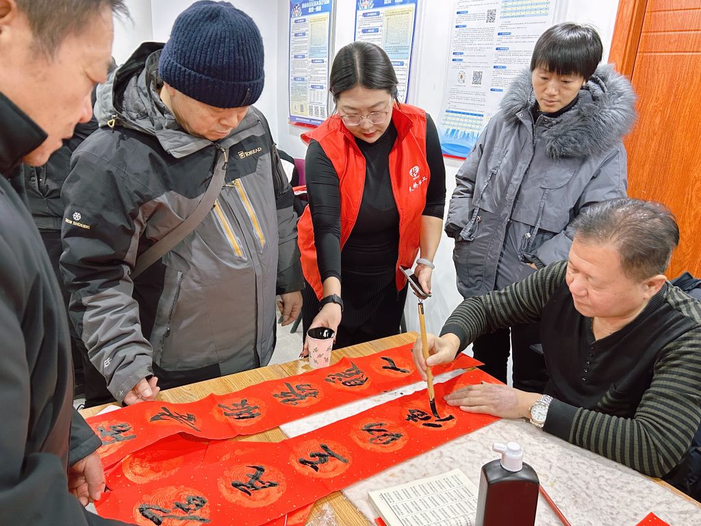 社工在现场引导居民有序排队,把写好的春联福字依次排列开来,送给大家,与居民共享新春活动的温馨祥和。居民李先生高兴地说:“手写的春联更有年味,这些春联不仅承载了美好的祝福,还让我们感受到了传统文化的独特魅力。”