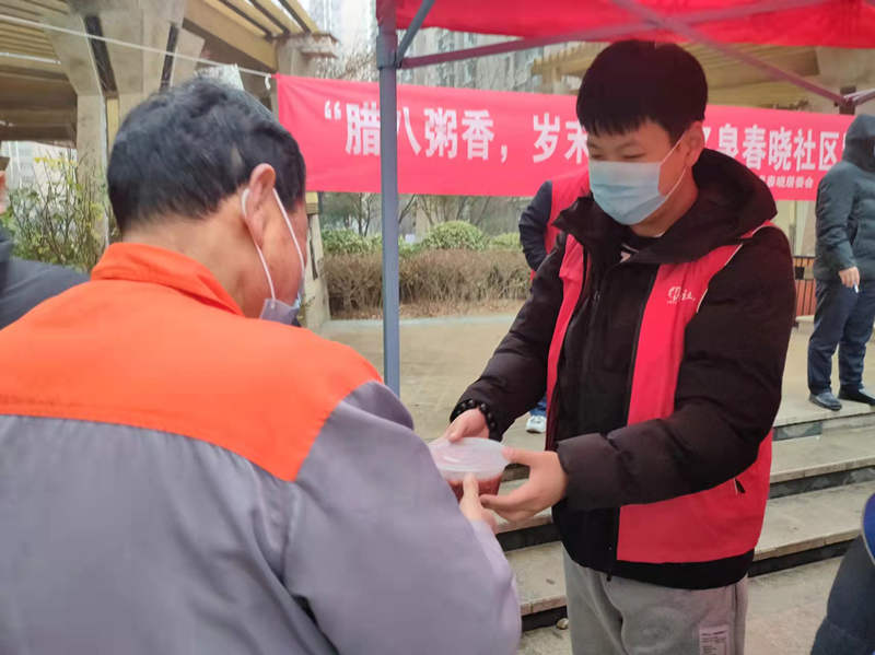 俗话说:过了腊八就是年,腊八节作为中国传统节日,在我国有着悠久的传统和历史,在这一天喝腊八粥是老百姓的传统习俗。为丰富辖区居民节日生活,进一步推动社工站志愿服务工作常态化,1月10日,宝华街街道社工站带领志愿者在名泉春晓社区广场开展了“浓情腊八 情暖冬日”志愿服务活动,亲手为辖区居民以及社区环卫工作者们送上了一碗热气腾腾的腊八粥,让他们感受到了浓浓的关爱和真挚的节日问候。