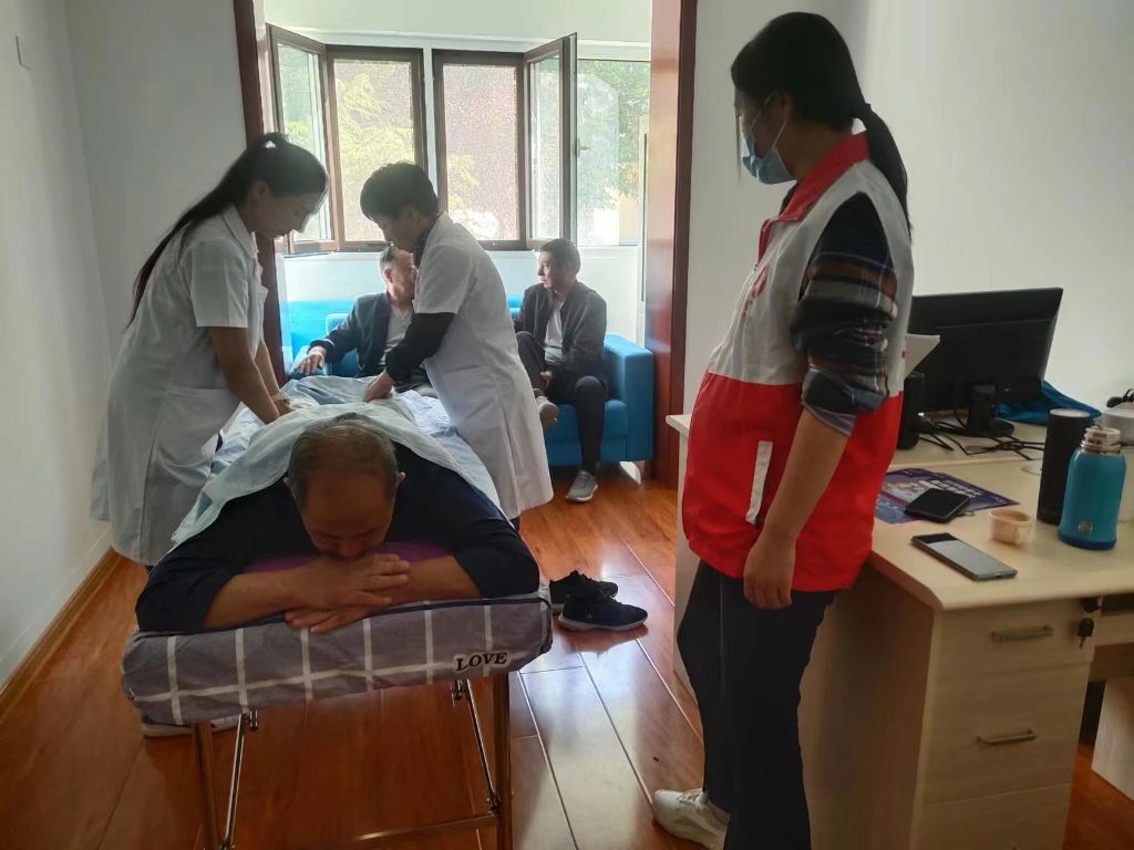 推拿理疗体验。中医学指出气血和睦、气血温煦、经脉通畅。长期推拿可以达到疏通经络、推行气血、扶伤止痛、祛邪扶正、调和阴阳的疗效。工作人员向老人介绍了简单的穴位按摩、日常疾病预防,在简单了解老人身体情况后进行了肩、颈、腰等部位的推拿按摩,赢得了老人的一致好评。