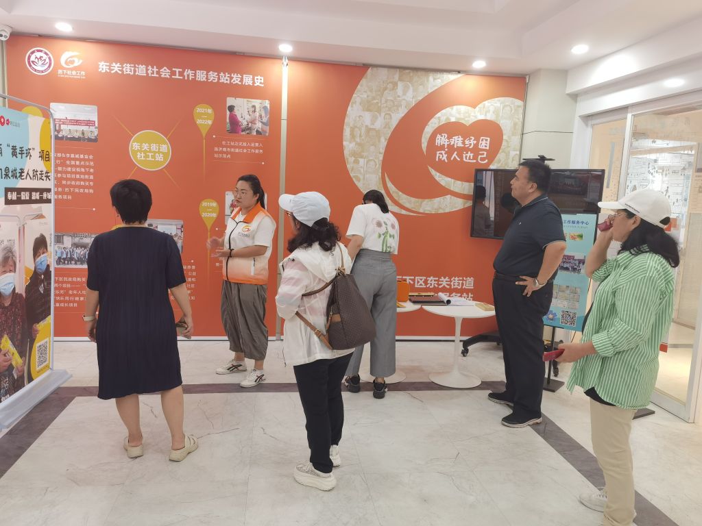 中国社会工作联合会、省养老服务指导中心到东关街道社工站调研老年社会工作