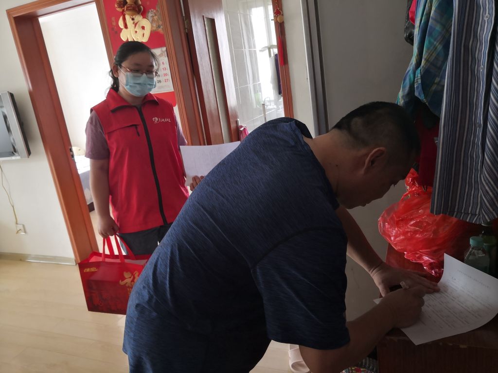 社工为残疾人家庭链接到慰问品,同他们电话联系,约定时间,带着礼品为他们送上关怀。不幸的家庭各有各的难题,走访过程中,社工表达了对残疾人家庭的关怀之情,了解其困难和需求,并认真聆听记录,向他们宣传了政府扶残助残相关的政策,介绍了社工站近期推进的服务,进一步发动他们参加社工站活动,更好的融入社区。鼓励他们不惧逆境,保持乐观心态,过好当下的生活。同时为残疾人家属提供心灵慰藉服务,长久以来对亲人的照顾十分辛苦,社工肯定了他们的无私付出,与他们促膝攀谈,帮助他们疏散内心阴霾。