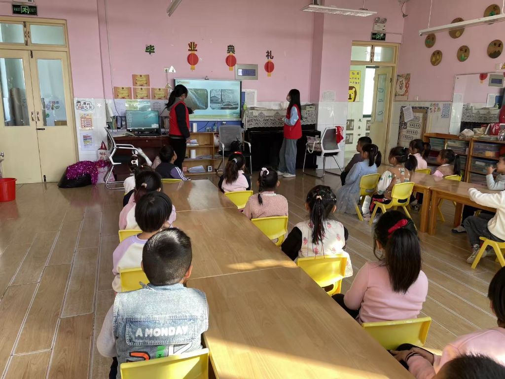 活动开始,社工首先用课件介绍了霜降这一节气,视频动画吸引了幼儿的注意力,生动地展示了霜降时节的自然变化和相关习俗。孩子们聚精会神地观看着屏幕,不时发出惊叹声。接下来进行了第一个活动“霜降节气推拿”。在社工的引导下,孩子们学习如何通过简单的推拿动作来缓解身体的疲劳和不适。社工耐心地示范每一个动作,并解释了这些动作对身体的好处。孩子们模仿着社工的动作,认真地互相帮助,体验着霜降时节的养生之道。