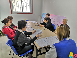 活动开始后,社工首先通过“名字接龙”的热身小游戏拉进志愿者之间的距离。接下来社工从项目组所开展的服务、项目组现有的五支志愿者队伍、社区居委会与社工项目组之间的关系、志愿者的基本职责、开展志愿服务活动需要志愿者做些什么以及积分登记兑换等几个方面做了详细认真的讲解,让各位志愿者了解志愿服务的相关知识,同时也了解更多关于志愿者在志愿服务过程中应注意的细节问题。在自由发言环节,志愿者范阿姨说:“我们参与志愿服务,过程很重要,但我个人觉得比过程更重要的是成效,我们开展志愿服务过后能不能达成我们预计的目标,这才是最重要的。”