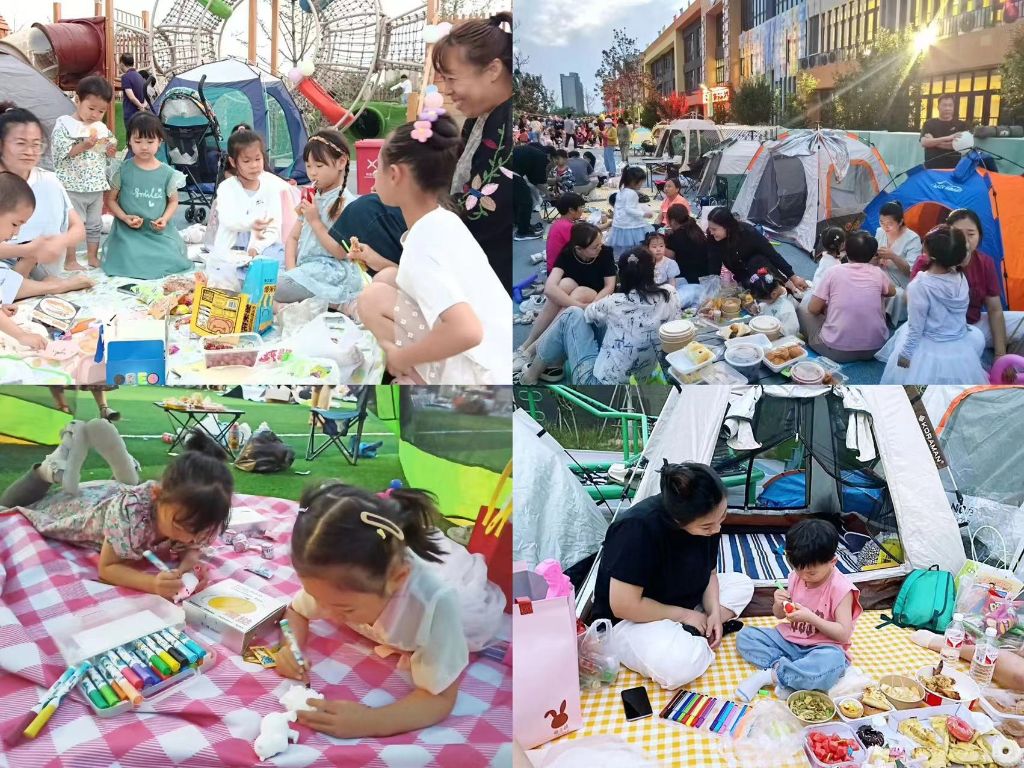 在“跳蚤市场”,孩子们间的一声声叫卖增加了同辈间沟通交流的机会,一件件商品从这个孩子手中“跳”到另一个孩子手中,在置换的过程中使孩子们享受分享的快乐;在搭建的帐篷里,孩子们有的玩起拍手游戏,有的跟爸爸妈妈说起了悄悄话,在小小的空间里享受着惬意时光;孩子们还拿出与家长们一起准备精心准备的小零食、小甜点与小伙伴们一起享受美食的快乐,家长们也卸下一身疲惫,投入到难得的亲子时光,感受这一份美好。