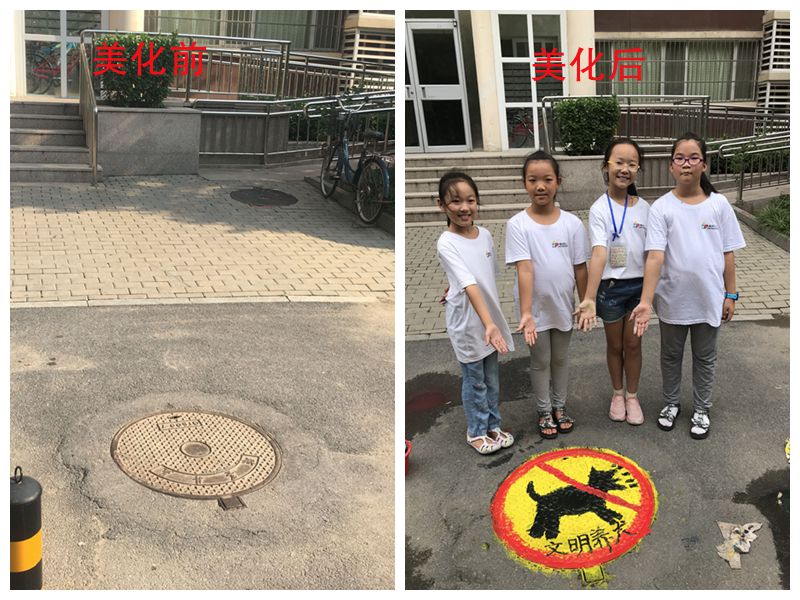 【山泉槐荫新映象项目组】小营员和文化小志愿者手绘井盖扮靓社区