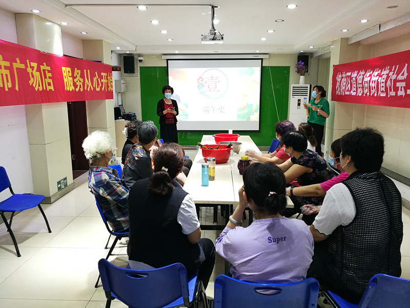 在端午节来临之际,为关注社区空巢独居老人等弱势群体,道德街街道社工站联合北辛街社区党委、居委会,在济南华联超市广场店的支持下,开展了“浓浓端午味,悠悠志愿情”端午节活动。