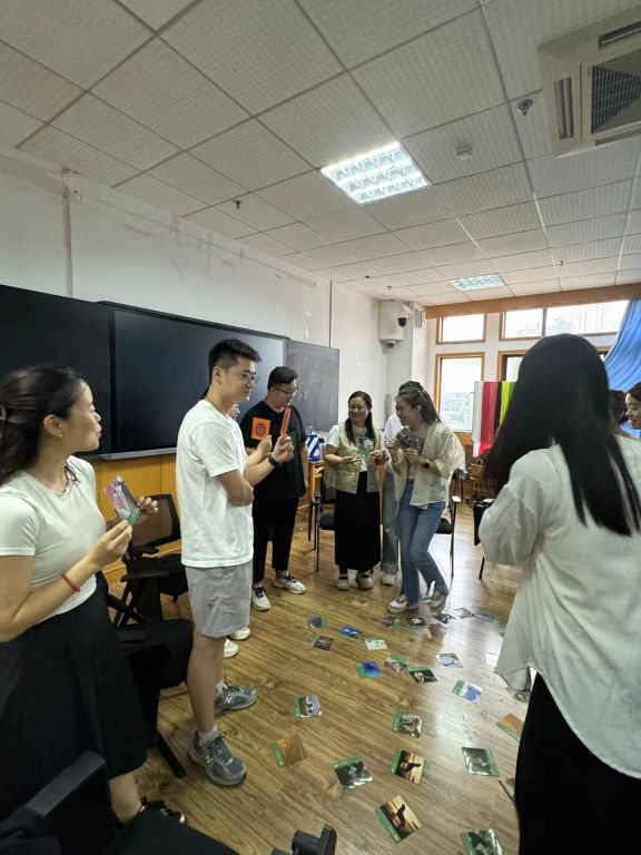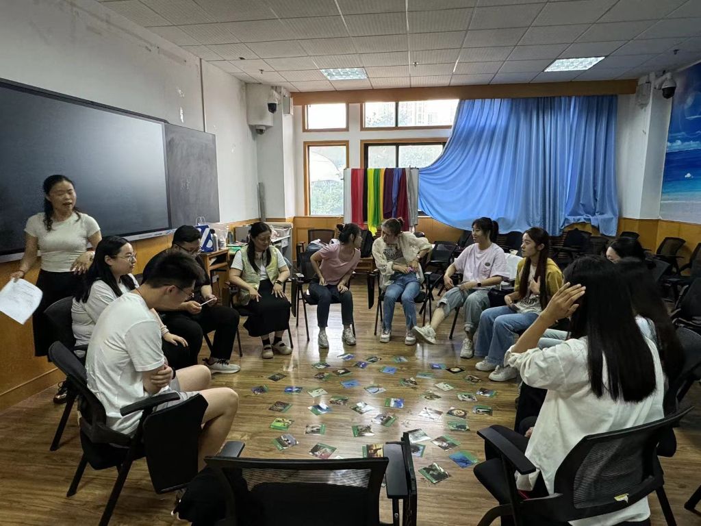 培训伊始,左院长着重澄清了小组规范,为本次体验式培训的开展奠定了基础。随后,左院长邀请社工们寻找可以表达当下和未来状态的图片,与周围成员相互分享,并建议大家对自己从“当下”状态到“未来”状态的压力状态值进行评估。在这个过程中,大家更加清晰地认识到自己所面临的压力程度,也为后续的深入探讨做好了准备。