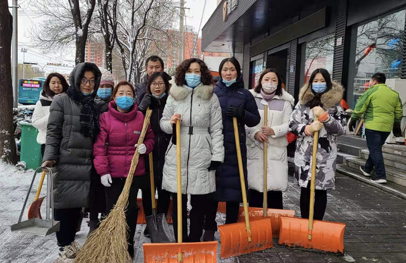 寒冷的天气并没有阻挡住大家的热情,“扫雪除冰、为民服务”成了扫雪队伍今日的口号,带上手套、手持铁锹和扫帚,我们变成了这条街“最靓”的群体。在项目组社工、社区居委会以及社区志愿者的“三方合力”之下,辖区交通要道和小区门口的积雪得到了清理,为居民的出行提供了便利。除此之外,项目组社工通过线上微信群等交流媒体,为社区老年群体送去了贴心问候,并提醒大家雪天路滑、小心慢行。“三社联动”为社区居民营造了干净整洁的社区环境,确保了居民的出行安全,用热情与真心温暖了雪后的泉城。
