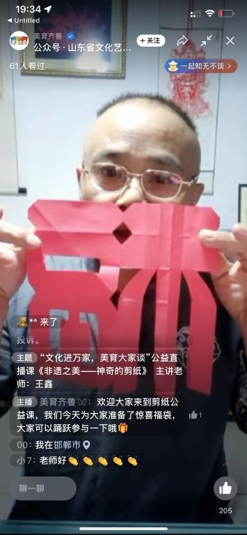 根据济南市疫情防控规定,自4月起所有中小学、培训机构暂停线下教学,开启线上网课教学模式。为促进学生在疫情期间身心健康成长,缓解居家隔离不安的心态,历城区全福街道社工站联合泉城书房开通了线上居家剪纸微课堂,邀请剪纸艺术家王鑫老师与学生共同走进非遗剪纸技艺。