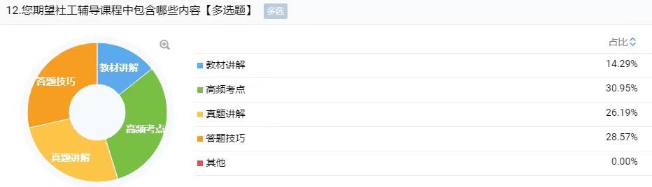 驻站社工提前进行关于社工考试需求调研,并形成统计图。平时利用“趵突泉街道社工考试交流”微信群,发送考试要点、复习计划和真题练习,引导参训人员常态化、阶段化学习备考。在学习群内,150多名学员通过每日一练熟悉真题题型,掌握真题考点。同时,各学员就考试方面的疑点和难点在群内进行讨论,在交流的过程中相互学习,巩固基础知识,补齐短板。