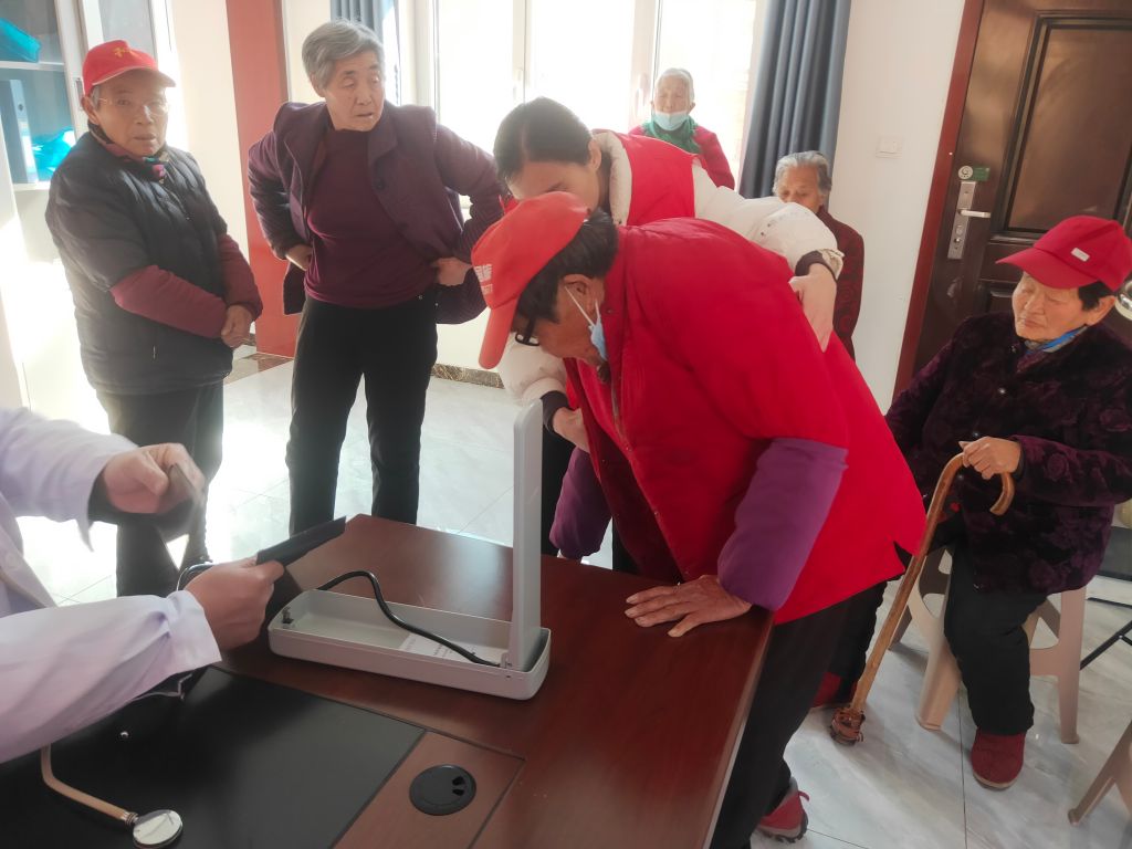 二十大报告中还提到了:“深入贯彻以人民为中心的发展思想,在病有所医上持续用力,让人民生活全方位改善。” 社工也借此机会,组织村医为老人查体量血压,教授老人身体保健知识,并将身体情况录入一人一档中。用实际行动让老人切实感受到晚年的幸福生活,也让党的二十大精神落地生根。