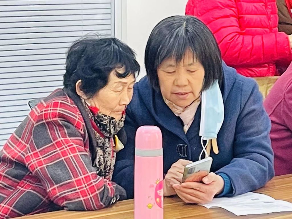 在本节的教学过程中,社工根据教学方案详细讲解设置微信字体、加入群聊、好友备注、发送语音等具体操作方法,示范简便的操作步骤;考虑到老年人学习能力的差异,社工适当地控制授课进度,在集体教学结束后,社工和志愿者们对服务对象提出的如何修改微信群内昵称、如何给好友发位置定位等疑惑进行解答,将互动教学和一对一指导相结合,在重复操作中加深服务对象对所学内容的记忆,并在活动过程中发挥专业优势,留心观察每名小组成员的心理-行为特征,运用倾听、共情等方法鼓励组员克服为难情绪,重塑自信;引导组员互助,激发组员的潜能。
