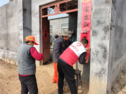 在贴对联的过程中,老人家一直站在旁边指导社工和志愿者们怎样贴对联。当看到春联整整齐齐的贴在门上,老人家高兴的笑了。贴完春联以后,老人还热情地邀请社工们进屋,兴致盎然地跟我们聊起生活中的琐碎趣事,让原本冷冷清清的屋子充满欢声笑语。