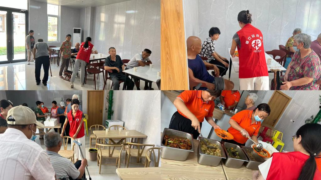 “就像上学一样,早上过来晚上回家,中午提供饭菜,里面还给开空调很凉快的,没事打打扑克下下象棋时间过得很快。”王奶奶很喜欢这个开在自己社区里面的养老服务中心。“奶奶你喜欢就好啊,我看着今天食堂有鸡腿呀,时间也不早了,我领着您去吃饭吧!”社工小刘领着王奶奶到一楼时,已经满是饭菜的香味,社工和工作人员们正引导老人入座,把饭菜为老人们送到座位上,并时不时询问老人是否需要添加饭菜。