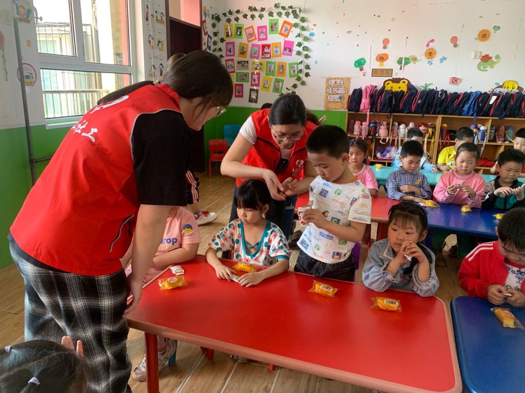 活动开始,社工利用视频、图片等方式,生动有趣的给幼儿讲解食品安全知识,引导幼儿从生活出发,发现生活中的问题食品、过期食品、三无产品、垃圾食品,学会对它们说"不",培养幼儿良好的饮食卫生。接着,告知孩子购买商品时要去正规的大超市,可不能在路边的小摊贩处购买。购买食品时要注意查看食品的安全标识、生产日期、保质期等,才能买到安全健康的食品呦!最后,社工为每一个孩子发放了面包和果冻,让孩子们积极的用刚才所学到的知识辨别食品的生产日期、保质期。幼儿们你一言我一语的回答着食品的日期,并将自己的感受表达出来。社工接着问!那么如果将过期的食物吃到肚子里,会怎样呢?幼儿们异口同声回答道,“吃了会肚子痛,痛的厉害就要去医院打针”。