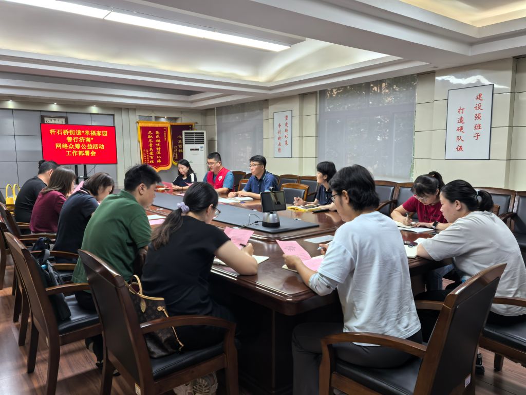 2024年8月19日,杆石桥街道办事处召开“幸福家园 善行济南”网络众筹公益活动工作部署会。会议旨在弘扬慈善事业精神,动员社区力量,积极参与“幸福家园 善行济南”网络众筹公益活动,推动各社区的设施提升、扶老助老等项目实施,提升居民的生活品质,增强为困难群体服务的能力和水平。会议由办事处副主任刘德华主持,各社区书记及科室相关人员参加。