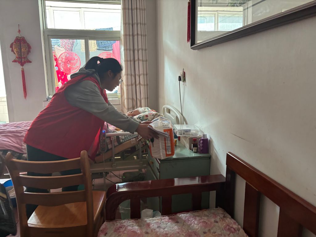 探访过程中,社工一行详细询问失能老人健康状况、饮食起居情况以及日常生活自理能力,护理人员对老人进行了全面的能力评估,并根据老人需求为老人匹配对应的资源,为老人提供了个性化的护理指导。与此同时还为老人送上了纸尿裤等护理品以及生活用品,让他们感受到亲人般的关怀和温暖。