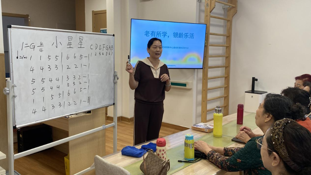为进一步丰富社区广大居民的文化生活内容和形式,提高其精神文化生活,世贸天城中心社区以党建为引领,积极倡导社区居民科学、文明、健康的生活方式,于8月30日上午9点,官扎营社工站联合椿合慧养养老服务中心组织辖区居民开展“老有所学 银龄乐活”乐理知识课堂。