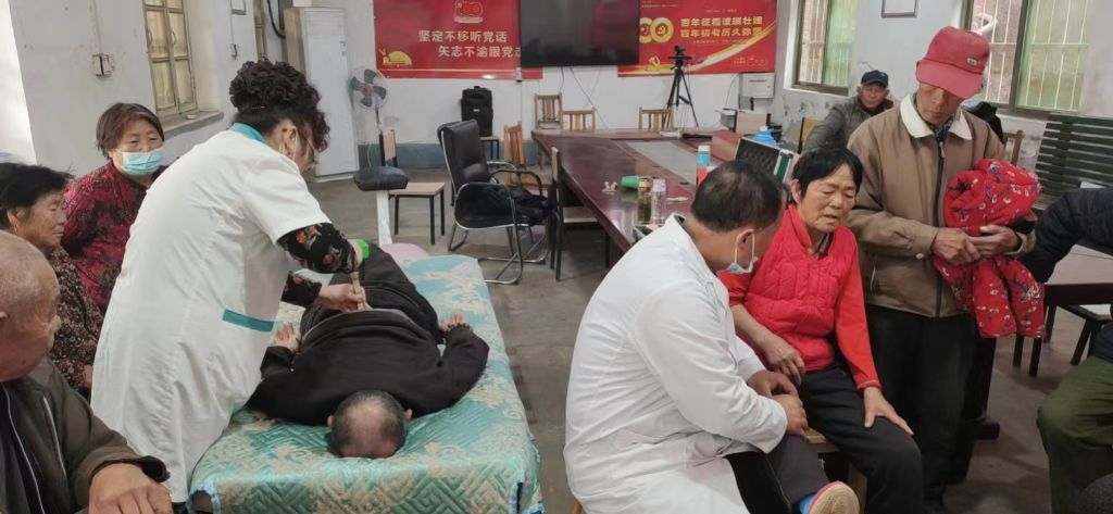 为满足服务对象对高质量医疗卫生服务的需求,让高龄老人在家门口便能享受到更便捷、更优质的医疗服务,提高张夏街道办事处靳庄村高龄老人的健康意识和自我保健意识,11月10日,张夏街道社工站链接盛泉集团在张夏街道办事处靳庄村开展“温暖夕阳红·义诊进乡村”活动。